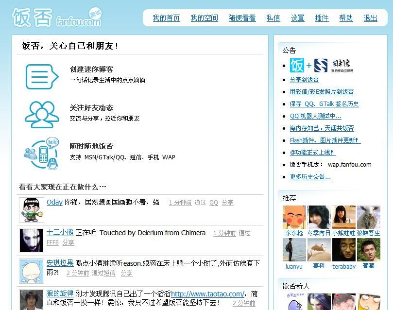 在饭否的初期阶段,中国大陆与Twitter类似的中文网站有六七家,其中饭否是各方面功能较为完备,最接近Twitter的一个。与Twitter相比,中文微博客为大多数不习惯英文的中国用户提供了更好的选择。 失败的教训:初创公司不该碰政府敏感领域 2009年上半年,饭否的用户数从年初的30万左右激增到了百万。 同年6月2日,惠普成为饭否首个企业付费用户,开始获得第一笔收入。与此同时,陈丹青、艾未未、梁文道、连岳等一批文化名人的加入,带动了饭否的快速成长。 在2009年下半年饭否被有关部门非正常地被关闭,2010饭否创办人王兴在接受采访时,回忆一年前饭否被突然关停表示:为了应对政府有关部门对网络言论的监管,饭否当时做出大量删贴、限制敏感关键字、暂停搜索等措施。“我们已经做了大家都能想到的事情。” 当饭否关闭后,新浪微博强势崛起。并凭着和政府雄厚的关系,以明星和名人策略一举奠定江湖地位。新浪有足够多的财力和人力满足政府的监管标准。