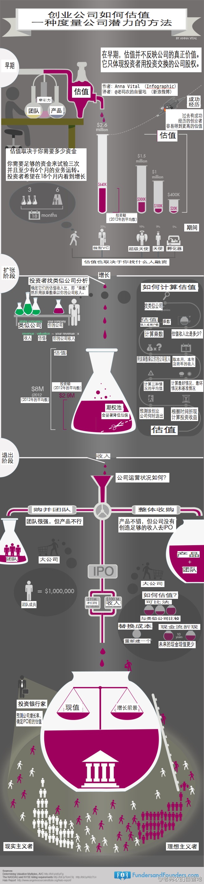 为什么创业公司的估值很重要? 估值对创业者很重要,因为它决定了他们在换取投资时需要交给投资者的股权。在早期阶段公司的价值接近于零,但估值要高出不少。为什么呢?比方说,你正在寻找在10万美元左右的种子投资,换取您公司的10%左右的股权。这是典型的交易。那么,你的投资前估值将是100万美元。然而,这并不意味着你的公司现在价值100万美元。你很可能卖不出这个金额。在早期阶段的估值更多看重的是增长潜力而不是现值。 在早期如何计算你公司的估值? 先搞清楚你需要多少钱才能成长到业务呈现显著增长的阶段,从而可以开始下一轮融资。比方说,这个数字是10万美元,可以让你持续18个月。投资者一般不太会想压低这个金额。为什么呢?因为你表明了这是你成长到下一阶段需要的最低金额。如果你拿不到这笔钱,你的业务就不会增长 – 这不符合投资者的利益。因此,我们可以说,投资金额就是这样了。 现在,我们需要弄清楚要给投资者多少股权。它无论如何不可能超过50%,因为这将使你,也就是创始人,失去努力工作的动力。同样,它也不能是40%,因为这样留给下一轮投资者的空间就很小了。如果你得到一大笔种子资金,30%将是合理的。可在咱们讨论的这个情况下,你要的不过是10万美元的相对小额投资。所以,你可能会给出5-20%的股权,具体比例取决于你的估值。 正如你看到的,10万美元投资定了。 5%-20%的股权也已经谈妥。这就确定了投资前估值是介于50万美元(如果用20%股权交换10万美元投资)和200万美元(如果用5%股权交换10万美元投资)之间。 具体会落在这个范围的哪个数上呢? 1.这将取决于其他投资者如何看待同类公司的价值。 2.取决于你能让投资者在多大程度上相信你真的会快速增长。 如何确定估值? 种子阶段 早期的估值通常被描述为“艺术而不是一门科学”,可这样说对理解估值没什么帮助。还是让我们使它更像一门科学吧。让我们来看看究竟有哪些因素会影响估值。 牵引力 (译者注:行话叫traction,这个词翻译成牵引力完全驴唇不对马嘴,像是颈椎接受某种治疗似的。可是暂时咱也没有更好的译法,只可意会不可言传了。就连老外也解释不好这个词,比如,在这篇好文《traction到底是他妈的什么意思?》里也颇解释了一番。总之,它的意思就是创业公司现在进展的情况,比如有多少用户,有多少收入,有哪些名人在帮你忽悠,诸如此类)。 所有可以向投资者展示的东西中,牵引力是对他们最有说服力的。公司存在的重点是获得用户,如果投资者看到你已经有用户 ,那么牵引力的证据就很充分了。 那么,有多少用户? 如果所有其他的事情都对你不利,但你有10万用户,那么你就有一个很好的融资100万美元的机会(假设你在6-8个月内就吸引到了这么多用户)。你吸引用户的速度越快,他们的价值就越大。 声誉。有一种声誉是类似于杰夫·贝索斯(译者注:亚马逊CEO)的人们才能拥有的,不管他的下一个点子是什么都能确保很高的估值。有以往的成功创业经历的创业者也往往会获得更高的估值。但有些人既没有牵引力也没有显著的成功历史,照样获得了投资。有两个例子浮现在我脑海中。 Instagram的创始人Kevin Systrom,凭着当时还叫Brnb的产品原型就在种子阶段获得额度为50万美元的第一笔投资。Kevin在谷歌工作了两年,但除此之外,他并无重大的创业成功经历。 Pinterest的创始人Ben Silbermann有着同样的故事。在他们的案例中,他们各自的风险投资家说,他们是凭自己的直觉投资。虽然它作为方法用处不大,但如果你能学会如何展现自己善于成事的形象,缺乏牵引力和声誉就不会妨碍你在较高的估值下融资。 收入。收入对于B2B的创业公司比对消费类创业公司更重要。有收入使公司的估值更为容易。 对于消费类创业公司来说,有营业收入可能反而会降低估值,即使是暂时的。这是有道理的。如果你在向用户收费,你就会增长得更慢。增长缓慢意味着在更长的期间里融资更少。估值会更低。这似乎与直觉不符,因为收入的存在意味着创业公司离真正赚钱更近了。但创业公司的核心不仅仅是赚钱,而是在赚钱的同时快速增长。如果增长不够快,那么我们看到的只是一个传统的商业模式。 最后两个要点不会直接让你获得高的估值,但他们会有帮助。 分销渠道:即使你的产品可能处于非常早期的阶段,你也可能已经有一个分销渠道。例如,您可能已经在一个社区做过门到门的地毯销售业务,该社区的几乎每位住户都在风险投资公司上班。现在,你已经有一个针对风险投资从业者的分销渠道了。或者您可能建了一个猫咪照片的Facebook页面,获得了1200万个“赞”,现在这个页面可能成为你的猫粮产品分销渠道。 行业的热度。投资者都是跟风的。对于热门的东西,他们会愿意支付一些溢价。 你需要高估值吗? 不一定。当你在种子这一轮得到一个高估值,下一轮你就需要更高的估值。这意味着你在两轮之间需要增长非常多。 一个经验总结是,在18个月内你需要证明你的业务规模增长了十倍。如果你做不到,你要么接受通常是很不利的条款来进行一次低估值融资,还得寄希望于有人愿意往一个缓慢增长的业务里扔更多的钱;要么就等着耗尽现金后关门大吉。 融资策略可以归结为以下两种: 其一是,要么做大要么关张。尽可能以最高的估值拿到尽可能多的资金,然后把钱快速花