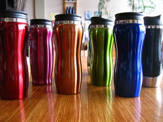 很多随行杯不适合放进微波炉。如果是不锈钢制的,千万别解热。不锈钢可以保存热量,让咖啡和茶保持温暖,也可以让微波炉毁于一旦。如果是塑料的,看看杯底说明,有没有注明可以微波炉加热。