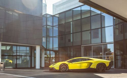 在光影的效果下Aventador 50周年纪念版仿佛置身陈列柜中,它的右上方则是兰博基尼博物馆,由此可见兰博基尼的工厂是多么的寸土寸金。