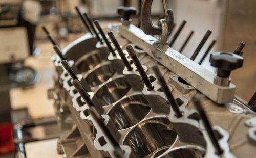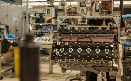 意大利北部是多雨的,很显然这样的气候对于精密高性能发动机的组装并不是好事。但是圣亚加塔·波隆尼却是意大利北部的一个特例,地方气候相当不错,对于精密发动机的组装再合适不过。图中吊装的V12发动机已经完成汽缸盖的安装,可以看到一侧六个火花塞的安装预留位。 制造工艺