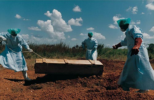 而随着39岁的塞拉利昂医生、病毒性出血热专家卡恩的去世,人们对正在西非国家流行的埃博拉病毒又多了几分恐惧。卡恩是塞拉利昂唯一一位病毒性出血热专家,曾照顾过一百多名埃博拉患者。在确诊感染病毒后,从发病到去世不到一个星期。卡恩生前工作过的治疗中心,已经有3名护士因感染埃博拉病毒丧生。 在利比里亚,埃博拉病毒已经夺走了该国卫生部一位高级官员、医学博士萨缪尔·布里斯本的生命;另有两位美国人——33岁的医生肯特·布朗特利博士和国际救援组织工作人员南希·怀特博尔也被证实感染了该病毒。 即使在救治患者时全副武装,穿全套保护装备,包括及膝胶靴、不透气的防护衣、手套、面罩及眼罩,但医护人员仍然不能完全避免感染。这让外界尤其不解,甚至造成了医护人员的极度恐慌:靠密切接触方式传播的埃博拉病毒是否存在另一种更为可怕的传播途径?