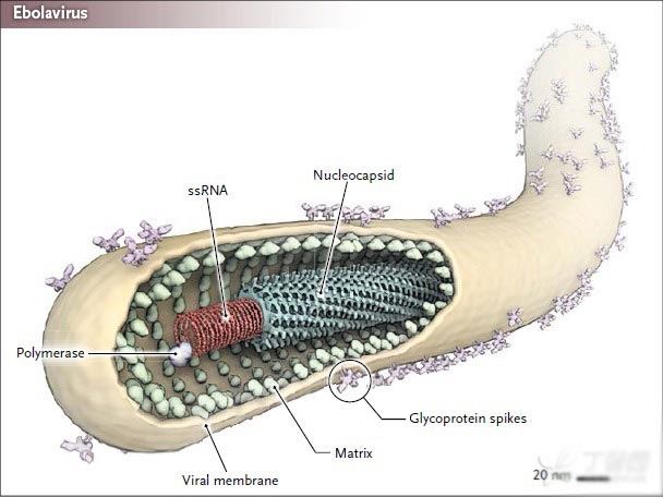 埃博拉病毒结构 研究人员在6只猴子感染病毒后1小时或24小时后为其肌肉注射BCX4430,观察猴子的发病情况,但这6只作为实验组的猴子在注射病毒后30天都全部存活了下来,而对照组的6只猴子到第12天的时候则已经全部死亡。在感染后48小时注射药物的6只猴子中,有5只到第30天时仍然存活。 虽然严格来说,马尔堡病毒并不能等同于埃博拉,但两者在人体中的表现类似。研究人员的试验显示,BCX4430可以抑制埃博拉病毒在体外培养的人类细胞中的复制,效力是对马尔堡病毒效力的一半。且在浓度增大到有效抗病毒浓度的10到50倍之前,不会导致培养细胞的基因突变,也不会杀死正常的细胞。 而据新华网华盛顿7月31日电,美国已紧急放行埃博拉疫苗人体试验,美国国立卫生研究院7月31日宣布将与美国食品和药物管理局合作,最早将于9月开始进行埃博拉疫苗人体试验,有望在明年早些时候得到试验结果。 素材来源:科技日报 该文章在 2014/8/4 12:02:36 编辑过 |
