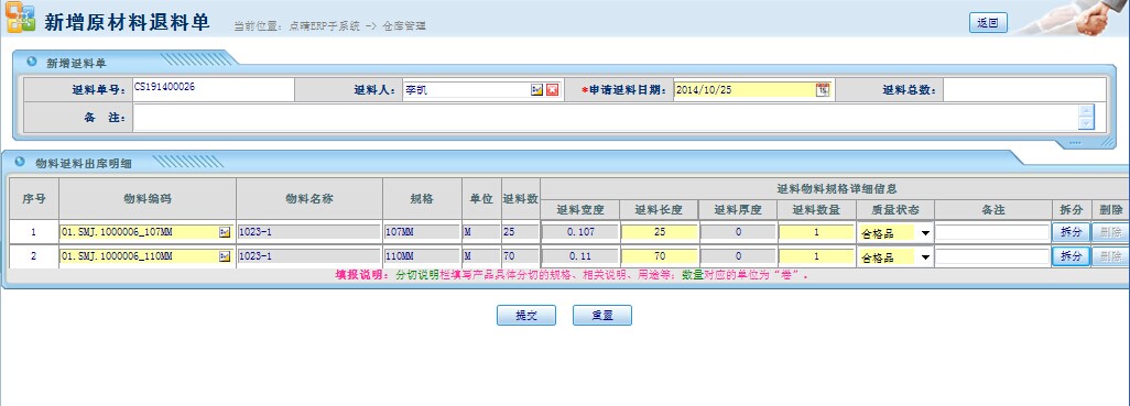 点晴模切ERP生产管理模块-生产退料申请