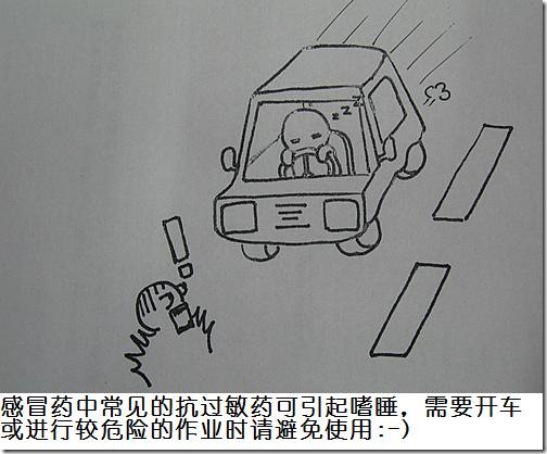 最后要强调的是,这一类药物不适宜长期使用,如果自己在家用药几天后没有好转,请一定要到医院就诊而不要继续长时间服药。 抗过敏药 在感冒时,体内会产生更多的组胺(一种由机体产生,可以引起过敏反应的物质),从而产生诸如鼻子发痒、流鼻涕、打喷嚏等类似过敏的症状。因此,在感冒药中常常会添加对抗组胺作用的抗过敏药来缓解这些症状。在感冒药中常用的抗过敏成分是氯苯那敏(扑尔敏)和苯海拉明。 使用抗过敏药需要注意的是,常用的此类药物都有让人嗜睡的副作用,吃了它难免昏昏沉沉。因此,在开车或需要进行危险操作(高空作业、操纵机械、在峡谷间挑战个走钢丝之类的)时请不要使用含有抗过敏成分的药物,以免精力无法集 中,一不留神发生意外。而日常可见的分为日片和夜片的感冒药(如白加黑、日夜百服宁等),其中的日片“不瞌睡”的秘诀也就在于去除了抗过敏的成分(说实 话,这个真没技术含量)。这种感冒药的日片在开车等等时候也可以放心使用,不过相应的症状也就得不到缓解了。