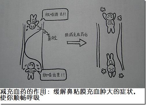 减充血药 在感冒时,我们经常会觉得鼻子不通气,呼吸都变得困难了。而缓解这一情况就要靠减充血药了。 在感冒时,鼻腔粘膜中的小血管充血肿胀,使得鼻粘膜也肿了起来,这就造成了鼻子不通气的情况。而减充血药能让血管收缩变细,从而减轻这种肿胀,于是呼吸也就变得顺畅了。