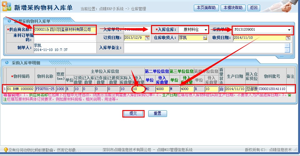 【点晴模切ERP】新增采购入库操作指引