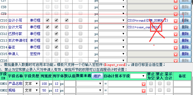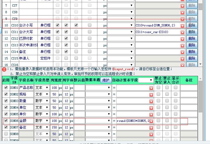 点晴永久免费OA工作流控件字段加减乘除、合计、金额大写及四舍五入等运算设置实例说明