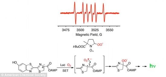 大约六十年前,科学家就开始研究昆虫腹部发光器官(简称“灯笼”)产生的大量复杂化学反应。而耶鲁大学、布法罗大学、Hauptman-Woodward研究所以及康涅狄格学院的科学家在前人研究的基础上,阐释了萤火虫的发光机制。 对于昆虫,发光的主要作用是沟通交流以及吸引异性。 科学家发现产生发光现象的化学反应涉及了两类化学物质,一类被称作荧光素,另一类被称为三磷酸腺苷(ATP)。这两种物质发生化学反应后的产物在遇到氧气后就会发光。