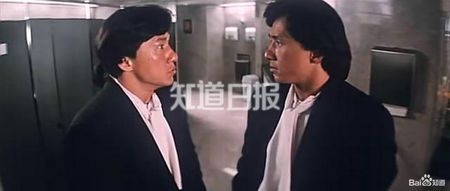 如果是一般人,表达完信念也就没事了。但爱因斯坦是超级伟大的科学家,神一样的人物,他不满足于只做口舌之争,打算按照科学规范,设计一个判决性的实验,以可验证的方式证明量子力学的错误。于是乎,1935年,爱因斯坦(Einstein)、波多尔斯基(Podolsky)和罗森(Rosen)提出了一个思想实验,后人用他们的首字母称为EPR实验。你可以制备两个粒子A和B的“圆”态,使得在这个状态中两个粒子的某个性质(如电子的自旋角动量、光子的偏振)相加等于零,而单个粒子的这个性质不确定。这样一对粒子称为“EPR对”,属于量子力学中的“纠缠态”,因为这两个粒子的性质不可分割地纠缠在一起了。然后你把这两个粒子在空间上分开很远,任意的远,然后测量粒子A的这个性质。好比你测得A是“上”,那么你就立刻知道了B现在是“下”。好比成龙电影《双龙会》中有心灵感应的双胞胎,一个做了某个动作,另一个无论有多远都会做同样的动作(在相反的方向)。问题是,既然A和B已经离得非常远了,B是怎么知道A发生了变化,然后发生相应的变化的?EPR认为A和B之间出现了“鬼魅般的超距作用”,信息传递的速度超过光速,违反相对论。所以,量子力学肯定有错误。 ![]() 成龙《双龙会》