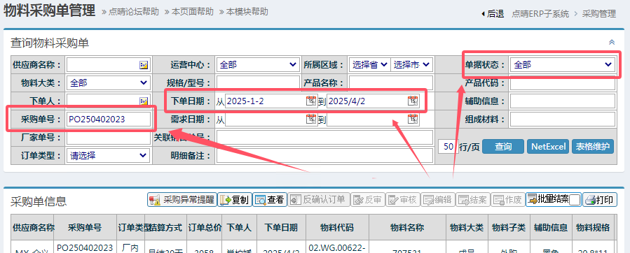 如何批量结案采购订单? 点击进入如下图: 如图所示: