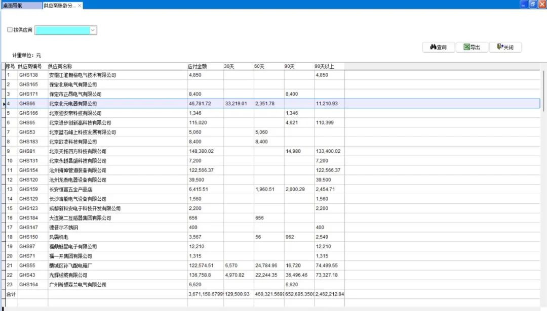 打开路径:【主菜单】-【采购】-【报表】-【供应商账龄分析表】大多数企业只重视对客户的应收款做账龄分析,其实供应商的应付账款账龄分析也同样重要。可以对企业有多少应付款,具体拖欠时间有个大致了解。企业可以了解应付账款的结构和变化,分析应付账款的风险和优化措施,确保供应链资金安全,方便财务合理安排资金。供应商账龄分析表就是...