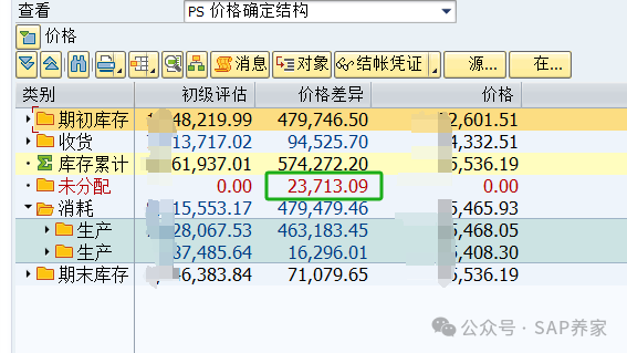 业务背景:实际项目中,月结后出现未分摊差异,如下图:那么这个问题该则怎么处理呢?首先我们分析一下差异:消耗:479479.46库存:71079.65未分配:23713.09那么:479479.46+71079.65+23713.09=574,272.2刚好和库存累计那行574272.2相同,差异整体分布我们心中有数了。...