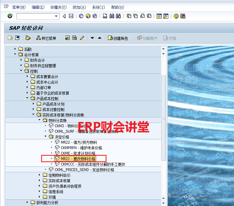 大家有没有遇见这种情况,MM01创建物料主数据之后,发现价格错了,想要更改,但是MM02进去价格却是灰色的,更改不了,根本改不了!别着急,虽然MM02不能更改价格,但是我们可以通过MR21更改物料价格。本文介绍MR21更改物料价格,菜单路径如下。MR21更改价格之前,MM03查看物料1010000043的计价方式为移动...