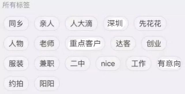 由于微信没有分类功能所以我们只能用贴标签的方式对好友进行分类。不过这样做也有好处,可以给一个好友贴数个标签,这样就可以从多个维度来定义好友。比如一个好友的标签是:重点客户、女性、北京、意向A产品等等,这样我们就针对性的管理了。